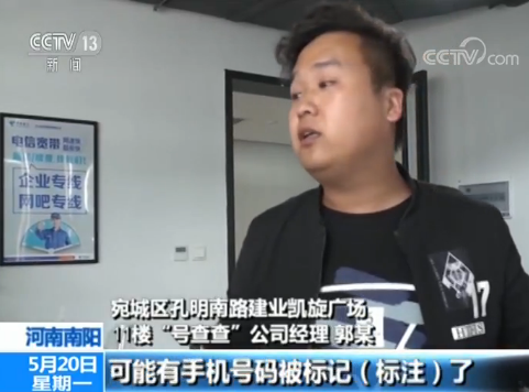 宛城区孔明南路建业凯旋广场11楼“号查查”公司经理 郭某:老百姓他想去取消标记(标注),第一时间能找到的话,我们就不会去这样做了,他们不知道被哪个平台标记(标注)了。