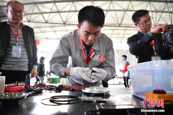 资料图:2018年中国民航机场助航灯光电工职业技能竞赛全国决赛。中新社记者 刘冉阳 摄
