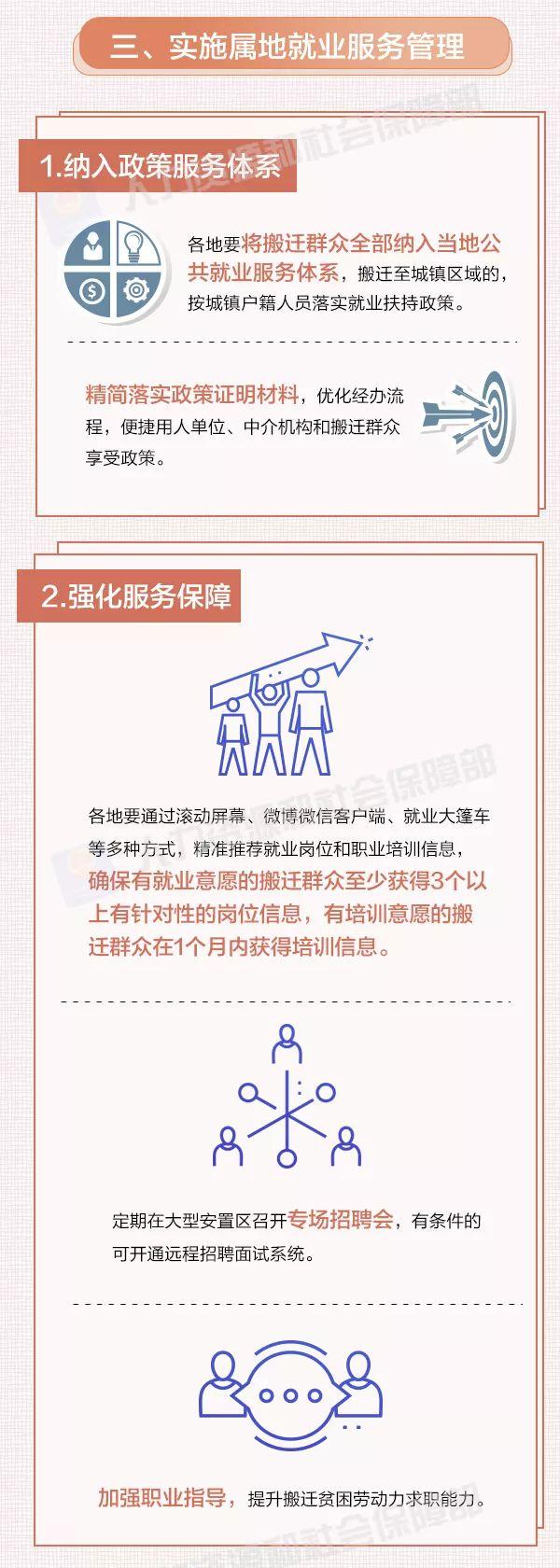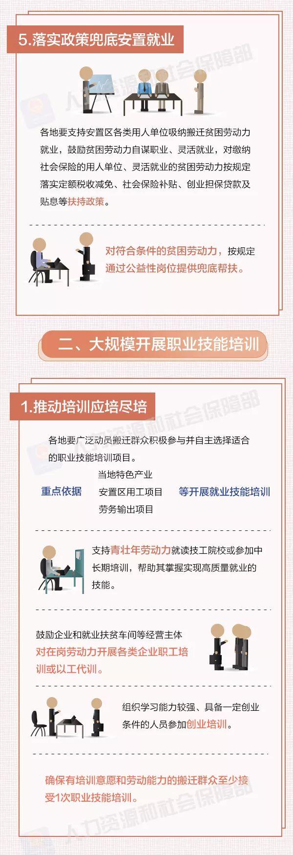 日前,人力资源社会保障部、国家发展改革委、财政部、国务院扶贫办联合印发《关于做好易地扶贫搬迁就业帮扶工作的通知》。带你一图看懂具体怎么做——