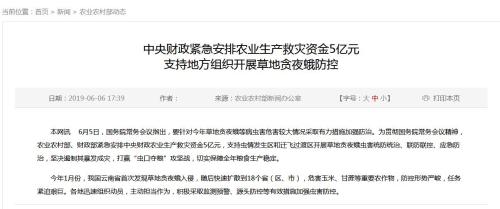 中新网6月6日电 据农业农村部网站消息,农业农村部、财政部紧急安排中央财政农业生产救灾资金5亿元,支持地方组织开展草地贪夜蛾防控。