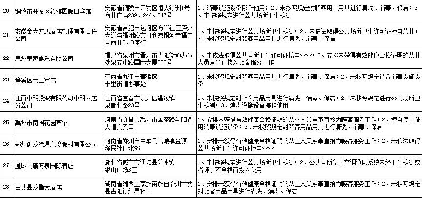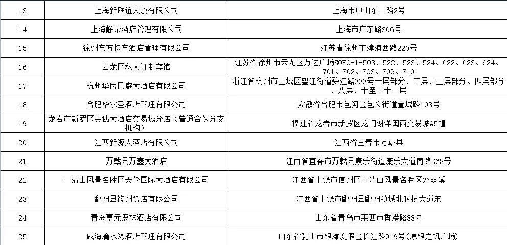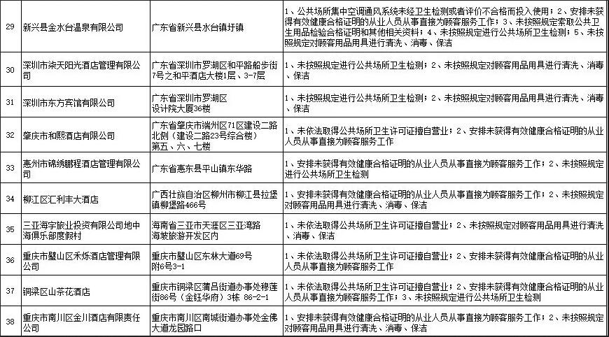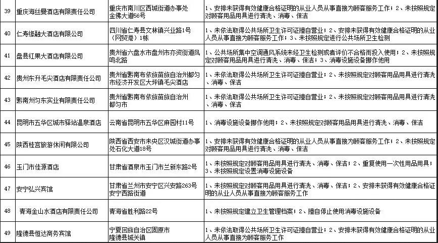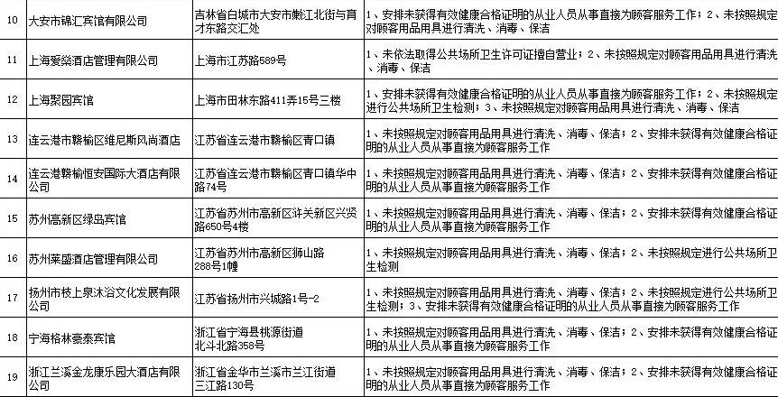 专项整治期间查处的有多项违法情形的住宿场所经营单位名单