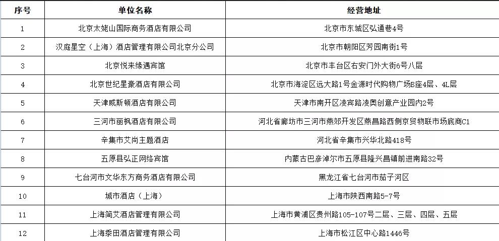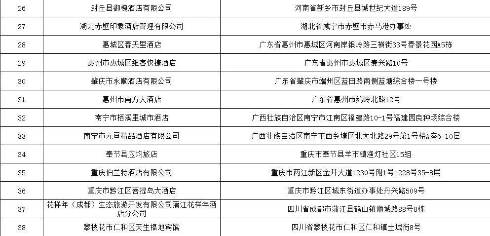 2018年3月—2019年3月多次违法受到查处的住宿场所经营单位名单