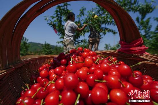 资料图:果农在采摘樱桃。时中新社记者 贺俊怡 摄