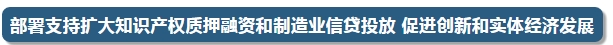为支持创新发展、强化知识产权保护利用、促进扩大就业,会议要求,支持扩大知识产权质押融资,以拓宽企业特别是民营小微企业、“双创”企业获得贷款渠道,推动缓解融资难。引导银行对知识产权质押贷款单列信贷计划和专项考核激励,不良率高于各项贷款不良率3个百分点以内的,可不作为监管和考核扣分因素;探索打包组合质押,拓宽质押物范围和处置途径。