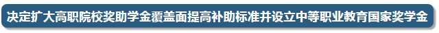 为促进人力资源素质提升、培养更多技能人才,会议决定,结合高职扩招,从今年开始,对高职院校国家奖学金奖励名额由5000人增至1.5万人;国家励志奖学金覆盖面提高至3.3%;国家助学金覆盖范围扩大至23.7%,平均补助标准从每生每年3000元提高至3300元,并同步提高本科院校学生补助标准。同时,设立中职教育国家奖学金,按每生每年6000元标准,从今年起每年奖励2万人。上述政策对包括公办、民办在内的各类职业院校一视同仁。