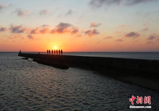 资料图:夕阳下,驻岛官兵在巡逻。王晓斌 摄