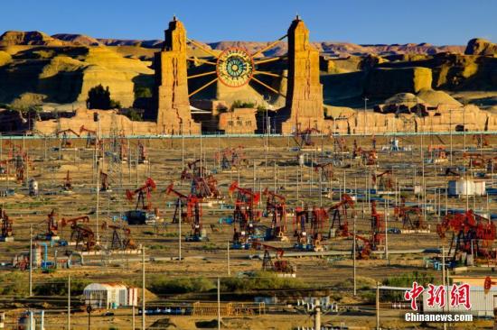 资料图:正在进行生产作业的采油机。吴小川 摄