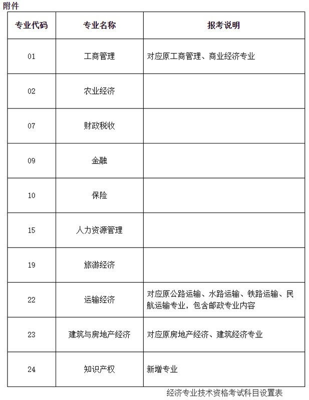第四条 初级、中级经济专业技术资格考试专业科目和高级经济专业技术资格考试均设工商管理、农业经济、财政税收、金融、保险、运输经济、人力资源管理、旅游经济、建筑与房地产经济、知识产权等10个专业类别。考生在报名时可根据工作需要选择其一。