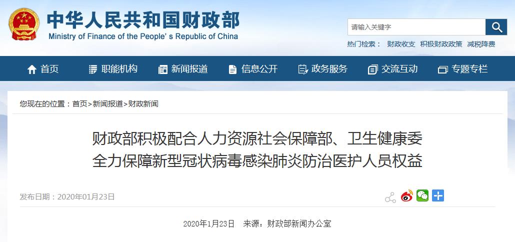 央视网消息:据国家财政部网站消息,财政部积极配合人力资源社会保障部、卫生健康委,全力保障新型冠状病毒感染肺炎防治医护人员权益。具体内容如下: