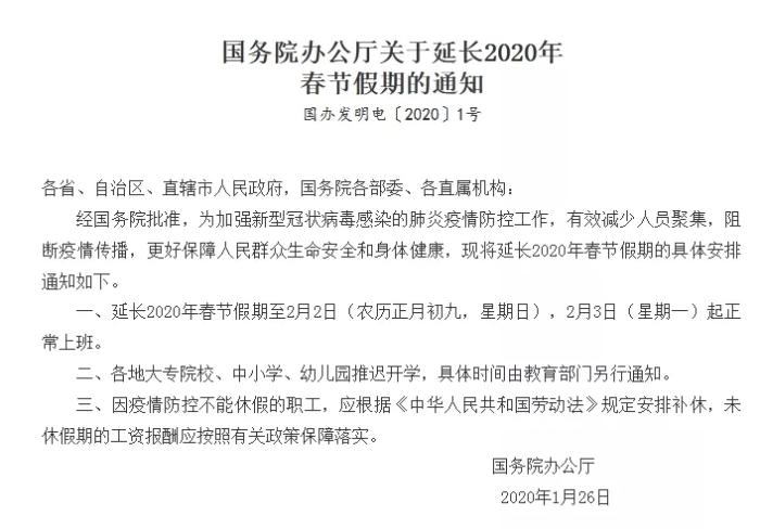 春节假期延长到2月2日的决定已经公布,说明专家研判适当延长假期,有助于阻断可能的聚集性传播,未来有关部门还会根据各自不同的特点,以及疫情进展,采取相应措施。