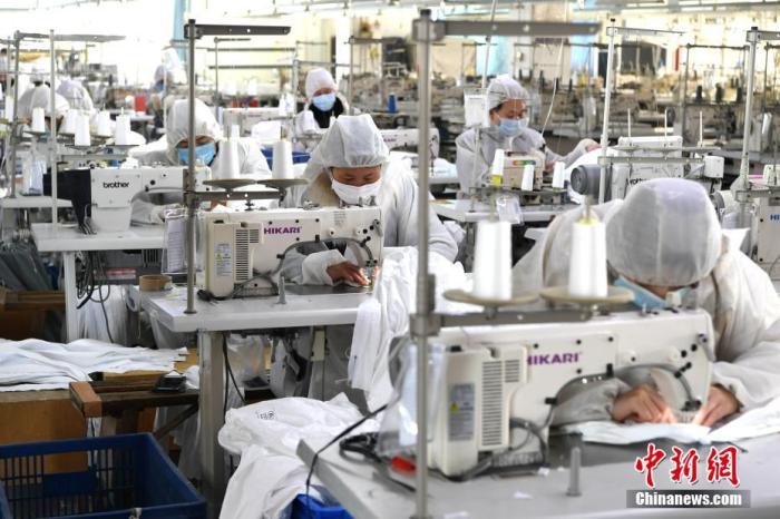资料图:企业工人正在赶制防护服。中新社记者 王东明 摄