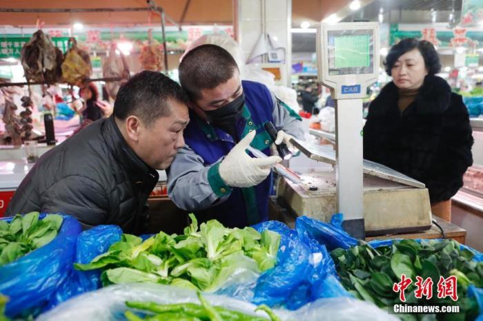 资料图:农贸市场开展卫生大扫除,专业杀虫公司工作人员在菜市场放置杀虫剂。中新社记者 殷立勤 摄