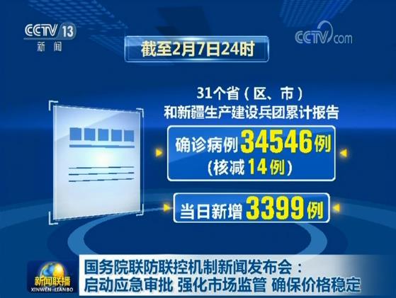 截至2月7日24时,31个省(区、市)和新疆生产建设兵团累计报告确诊病例34546例(核减14例),当日新增3399例;现有重症病例6101例,当日新增1280例;累计死亡病例722例,当日新增86例;累计治愈出院2050例,当日新增510例;现有疑似病例27657例,当日新增4214例。