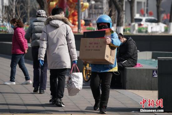 复工首日,北京金融街地区人流渐增。中新社记者 崔楠 摄