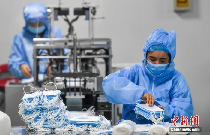 资料图:工人赶制医用口罩。中新社记者 刘新 摄
