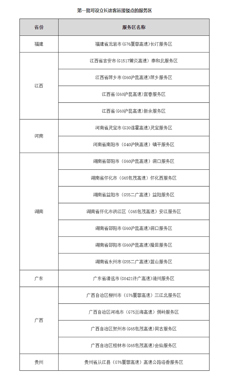 各地交通运输部门要指导道路客运企业调整发车时间,尽量避免凌晨2时至5时运行;无法避免的,要严格执行凌晨2时至5时停车休息或接驳运输制度。全国道路客运接驳运输平台在疫情防控期间实行24小时开放,开展接驳运输的道路客运企业(以下简称“接驳运输企业”)可根据需要随时提交接驳运输线路运行组织方案,省级交通运输部门要及时审核。经农民工输出、输入重点省份交通运输部门摸排,部遴选了第一批可设立长途客运接驳点的服务区(见附件),现予以公布,后续将根据地方意见建议滚动公布。疫情防控期间,接驳运输企业和接驳运输联盟要加强与高速公路服务区的对接,按有关规定设置接驳点、配备接驳点管理人员,为客运车辆提供接驳服务。接驳点运营单位和接驳运输企业要严格按照《道路客运接驳运输管理办法(试行)》,在全国道路客运接驳运输管理平台维护接驳记录,确保接驳过程规范、可追溯。接驳点所在地交通运输部门要指导高速公路服务区提供接驳运输车辆临时停靠、接驳点待班驾驶员住宿、热水和快速餐食等服务,保障农民工、司乘人员在接驳点能喝上热水、吃上热饭。高速公路服务区应加强消毒用品配备,增加公用设施和公共区域的消毒频次。在返岗包车发车前,各省交通运输部门要在全国道路客运接驳运输管理平台(lkys.cttic.cn)及时填报本省(区、市)农民工返岗运输车辆出发地、目的地、途经省份、发班时间、接驳点等台账信息。