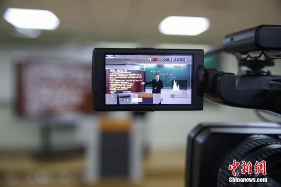 2月7日,贵阳市第六中学化学教师马静仁在录制课程。中新社记者 瞿宏伦 摄