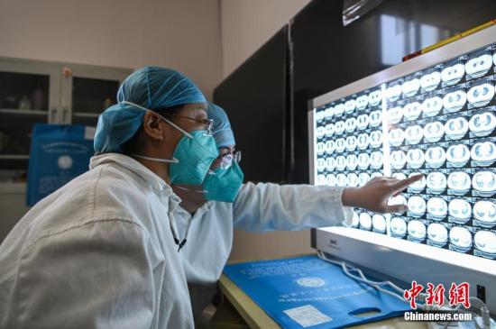 资料图:医务人员观看确诊病人的肺部CT片。中新社记者 何蓬磊 摄