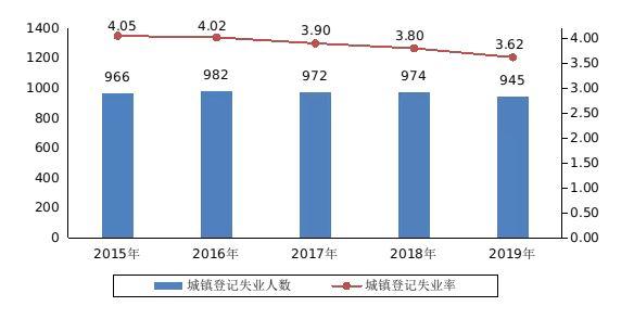 全年城镇新增就业1352万人,有546万城镇失业人员实现再就业,就业困难人员就业179万人。年末城镇登记失业人员945万人,城镇登记失业率为3.62%。年末全国城镇调查失业率为5.2%。全年全国共帮助5.1万户零就业家庭实现每户至少一人就业。选派3.1万名高校毕业生到基层从事“三支一扶”服务。年末累计帮扶1213万农村建档立卡贫困劳动力实现就业。2019年第四季度,岗位空缺与求职人数的比率约为1.27,全国人力资源市场需求略大于供给,供求总体保持平衡。