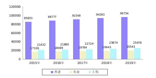 全年基本养老保险、失业保险、工伤保险三项社会保险基金收入合计59130亿元,比上年增加2040亿元,增长3.6%;基金支出合计54492亿元,比上年增加5285亿元,增长10.7%。