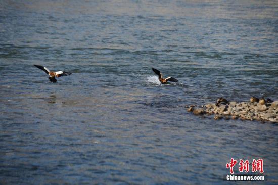 黄河中的斑头雁。杨艳敏 摄