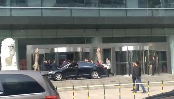 3月21日下午2时40分左右,郭树清出现在银监会门口,与前来参会的官员一同进入银监会,银监会门口从两点半左右布上了警戒线。杨峰 摄
