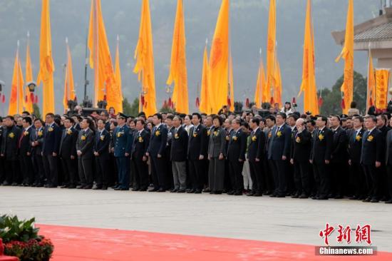 4月5日,戊戌(2018)年清明公祭轩辕黄帝典礼在陕西黄陵举行。万余名海内外中华儿女齐聚黄帝陵轩辕殿祭祀广场,共同祭奠中华民族的人文始祖轩辕黄帝。 张远 摄