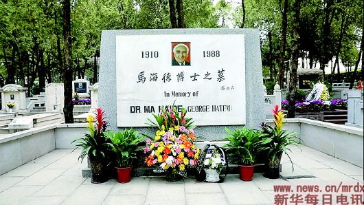 八宝山革命公墓里,苍松翠柏掩映,马海德的墓碑十分显眼。墓碑上端镶有马海德的照片,两侧分别是他生卒的年份。墓碑中间刻有时任国家主席杨尚昆题写的“马海德博士之墓”七个大字。