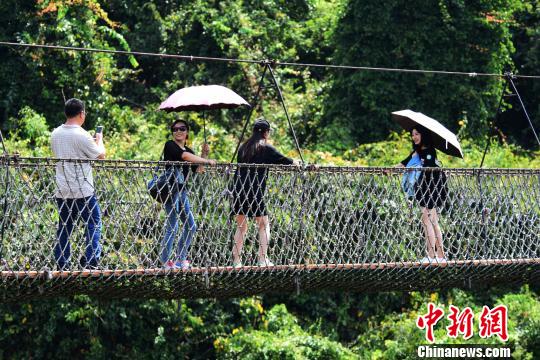 清明期间,游客在三亚亚龙湾热带天堂森林旅游区游玩。 黄庆优 摄