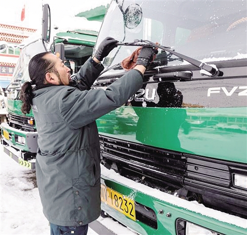 其美多吉在出班前检查车辆。经济日报-中国经济网记者 张 雪摄