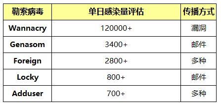 图:勒索病毒单日攻击次数最多的5个。