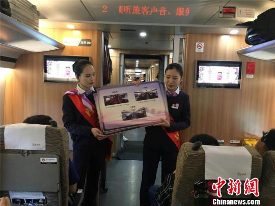 乘务人员为旅客介绍“复兴号”相关知识 张煜欢 摄
