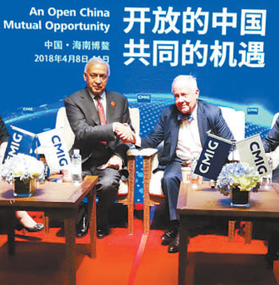 图右:4月10日,博鳌亚洲论坛2018年年会上的分论坛场景。本报记者 孟祥麟摄