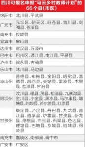 从今年3月启动至今,四川省已有20名乡村教师报名。与往年不同的是,今年报名“马云乡村教师”项目的只有66个县(市区)(具体名单附后)。报名截止时间为4月30日。