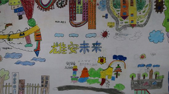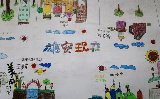 北京市朝阳区实验小学雄安校区学生们画笔下的雄安。(翻拍)