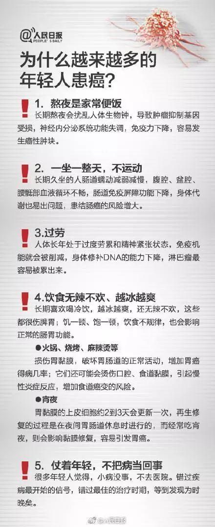 @人民日报微博曾归纳了年轻人患癌的原因: