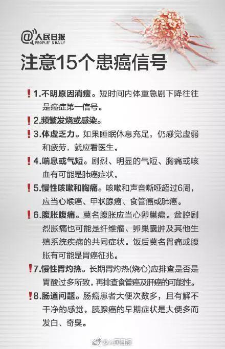 据@人民日报微博,当你的身体出现以下信号时候,就得小心了: