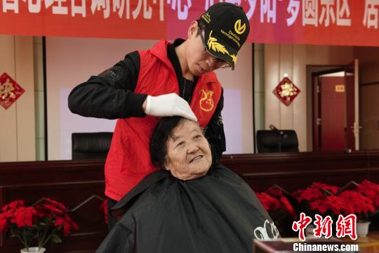 图为居家养老服务志愿者为老人进行免费染发。 央姬卓玛 摄