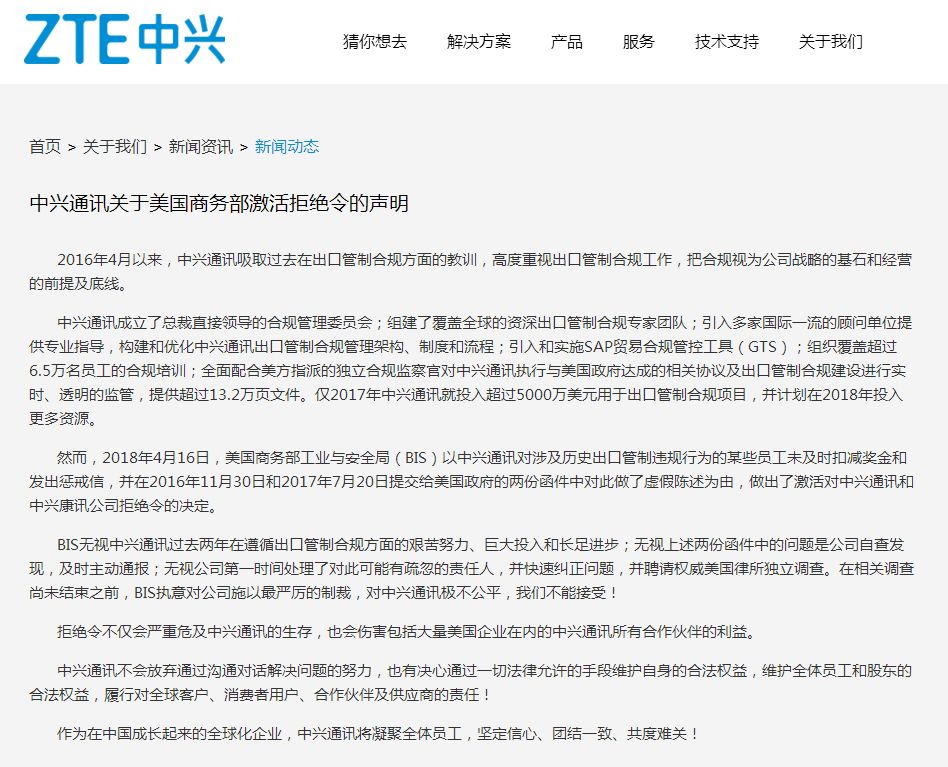 中兴回应美国制裁:发奋自强,我们有能力、有决心度过难关!(组图)