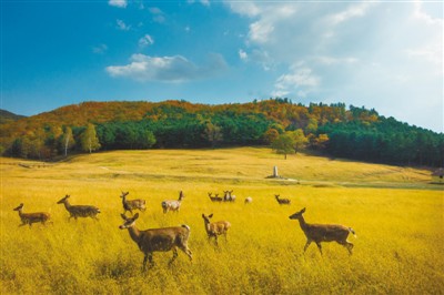 伊春市金山野生鹿场,林木繁茂,景色秀美。