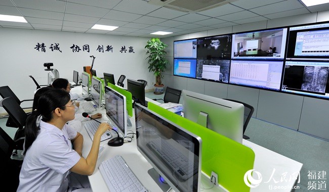 福州市一医院远程诊室内,医疗专家与基层卫生服务中心医生会诊。郑帅摄