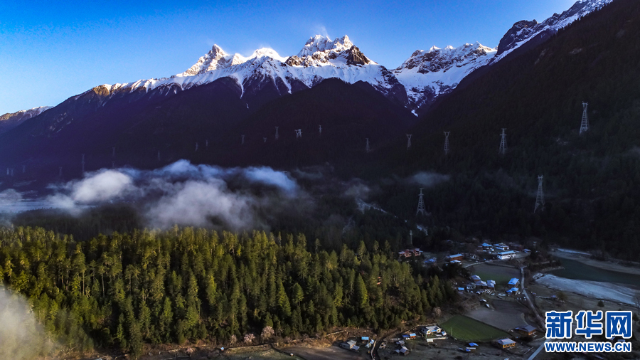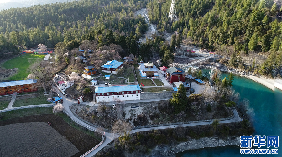 3月27日,与318国道一桥之隔的波密县古乡巴卡村(部分)。新华网 赵紫东 摄