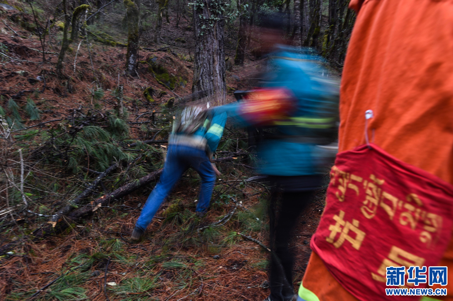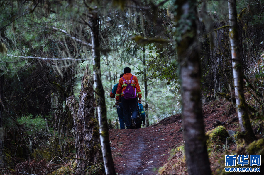 3月27日,护林员尼玛次仁、布迪和阿钦在巡山途中。新华网 达娃 摄