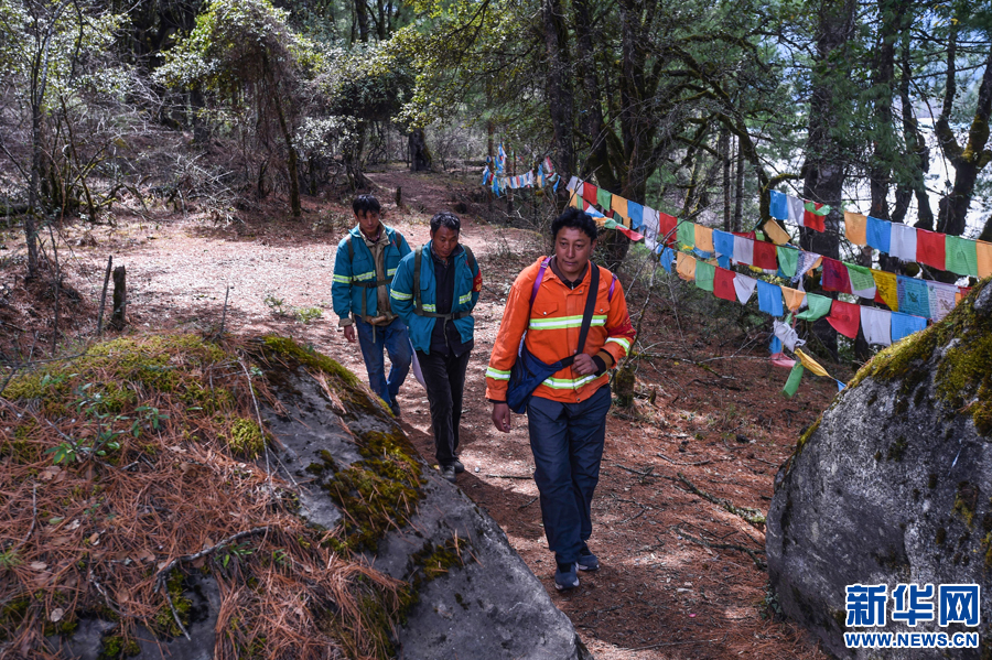 3月27日,护林员尼玛次仁、布迪和阿钦在巡山。新华网 达娃 摄