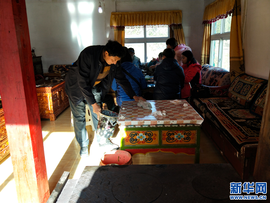 3月28日,护林员尼玛次仁在自家的家庭旅馆打扫卫生。新华网 雪珍 摄