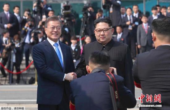 当地时间4月27日上午9时30分(北京时间8时30分),朝鲜最高领导人金正恩从板门店跨越军事分界线,与韩国总统文在寅握手,实现初次会面。