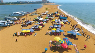 “五一”小长假临近,海南省的各景点旅游大幅升温。图为游人在海南博鳌玉带滩旅游。新华社发 蒙钟德摄