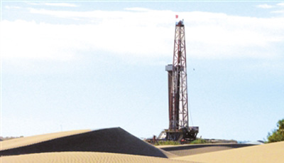 西北油田沙漠中的钻井 李学仁摄