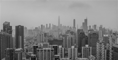 4月26日,站在深圳国际贸易中心大厦楼顶远眺,十几公里之外的深圳平安金融中心大厦高耸入云。改革开放40年间,深圳从一个边陲农业县快速发展成创新型现代化都市,深圳特区的地标高度从160米跨越到600米。记者 刘大伟 摄