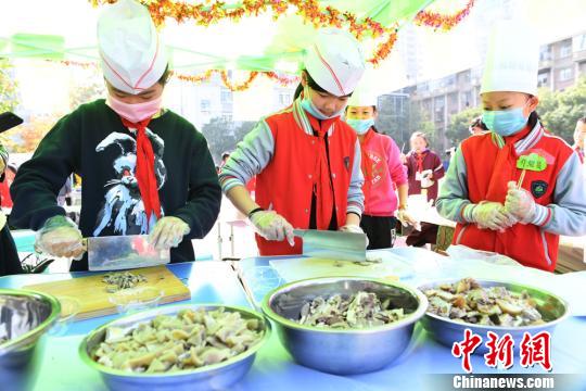 兰州市东郊学校12个班的“小学生大厨”在操场上现场制作校园美食。(资料图) 杨艳敏 摄
